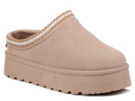 Kapcie damskie beżowe News 9248 ocieplane futerkiem na platformie ciepłe