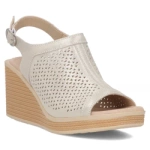 Klapki damskie na koturnie skórzane beżowe Filippo DK6050/24