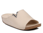 Klapki damskie beżowe T.Sokolski 301 na niskim koturnie skórzane wygodne