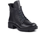 Trzewiki botki damskie GOE II2N4014 skórzane czarne ocieplane jesienne