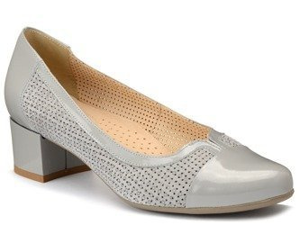 Czółenka damskie Bioeco 5101 buty na niskim obcasie skórzane szare