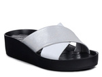 Klapki damskie na platformie skórzane biało-srebrne Loretta Vitale 1103