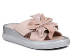 Klapki damskie na koturnie na lato beżowe Unisoft 5765