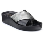 Klapki damskie na platformie skórzane czarno-srebrne Loretta Vitale 1103