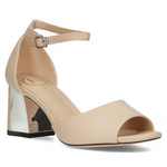 Sandały damskie na obcasie beżowe wizytowe skórzana wkładka Evento 5480