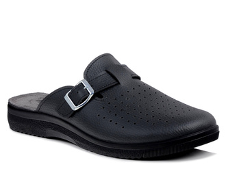 Klapki medyczne męskie kapcie domowe czarne skórzana wkładka Inblu BG-31
