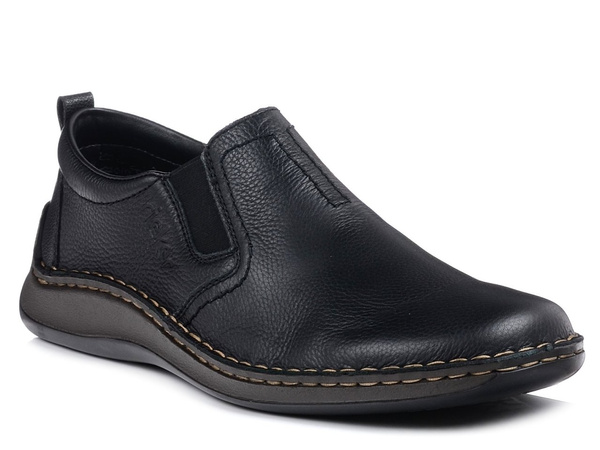 Półbuty męskie czarne Rieker 05264 szerokie skórzane wsuwane wygodne