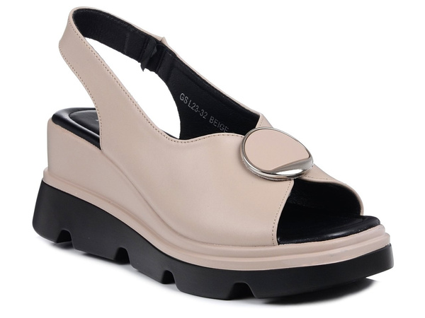 Sandały damskie na koturnie skórzane beżowe T.Sokolski L26-249