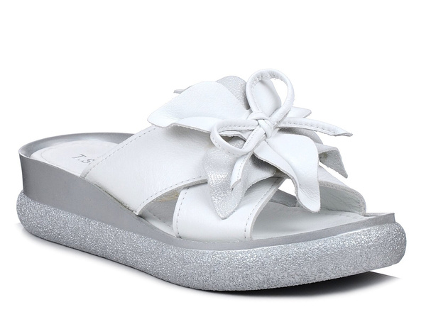 Klapki damskie na platformie skórzane białe T.Sokolski L26-155