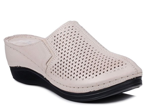 Opinie o Klapki damskie na koturnie skórzane szare ażurowe T.Sokolski L26-164
