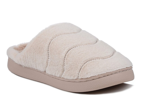 Kapcie damskie ciepłe ciapy domowe ocieplane beżowe Unisoft 6622