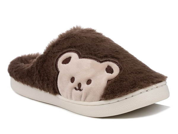 Kapcie damskie ciepłe ciapy domowe wsuwane brązowe Unisoft 7540