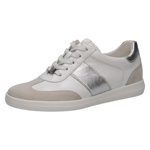 Jeśli szukasz butów, które łączą stylowy wygląd z komfortem noszenia, postaw na białe sneakersy damskie Caprice skórzane sznurowane. Model ten doskonale sprawdzi się zarówno w miejskich stylizacjach, jak i podczas codziennych aktywności. Połączenie bieli z akcentami w kolorze srebra i jasnego beżu sprawia, że buty prezentują się modnie i lekko.