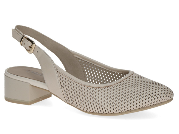 Czółenka damskie beżowe tęgość H Caprice 29602 skórzane odkryta pięta