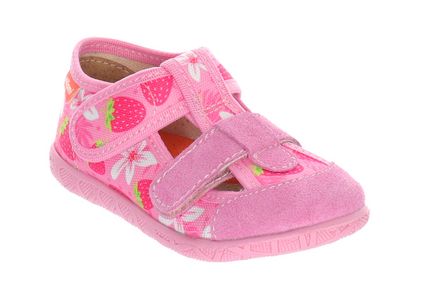 Kapcie dziewczęce do przedszkola róż Milami 118 na rzep szeroki nosek