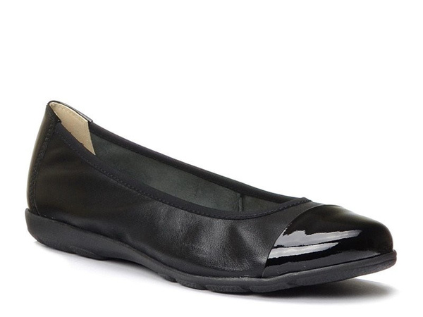 Baleriny damskie baletki skórzane czarne Caprice 22152 płaskie wygodne