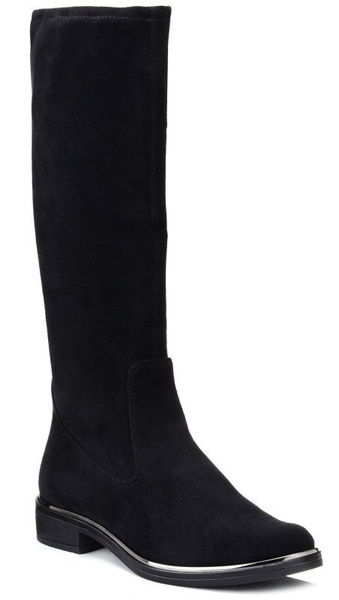Kozaki damskie zamszowe czarne Caprice 25512 na zamek na płaskim obcasie